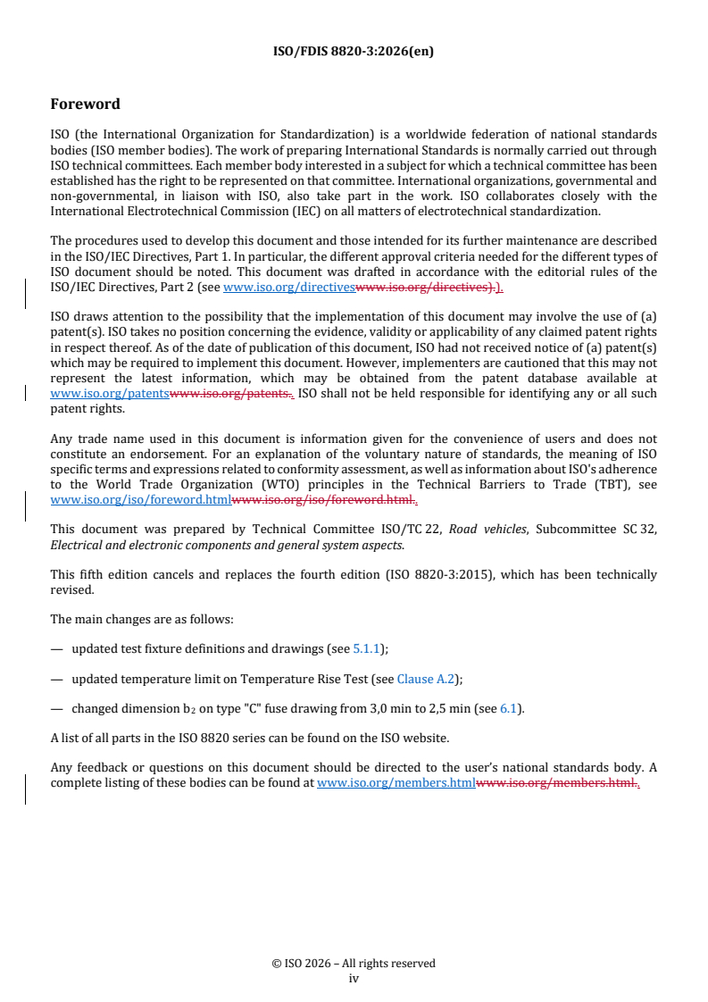 REDLINE ISO/FDIS 8820-3 - Road vehicles — Fuse-links — Part 3: Fuse-links with tabs (blade type) Type C (medium), Type E (high current) and Type F (miniature)