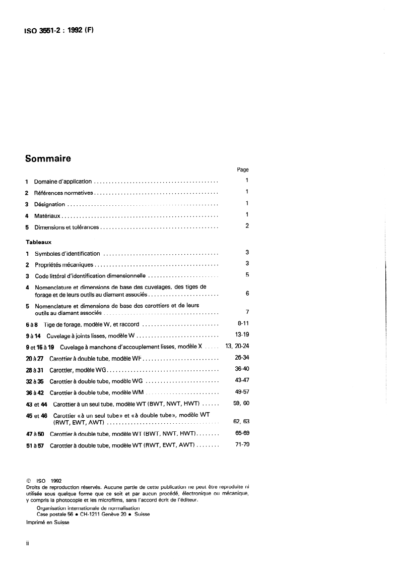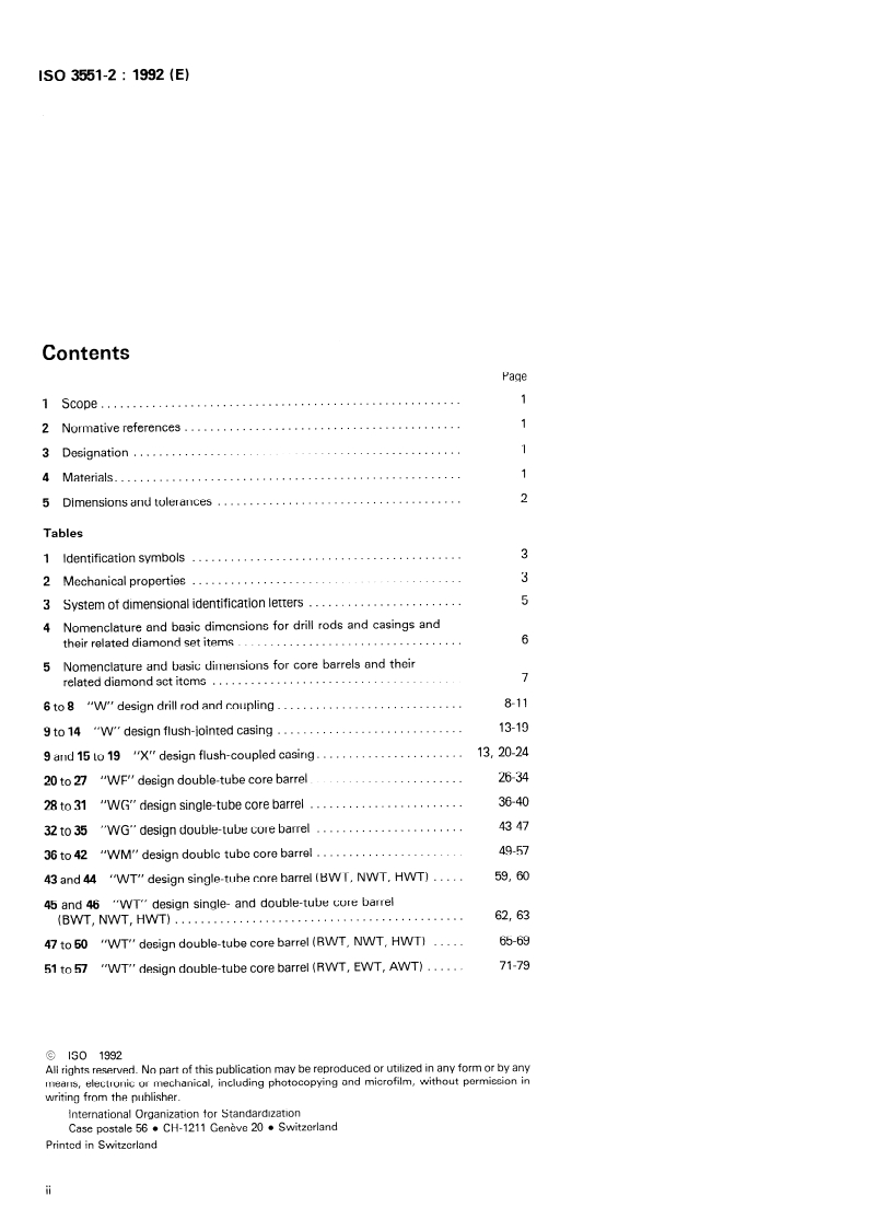 INTERNATIONAL STANDARD IS0 3551-2 First edition 1992-07-01 Rotary core diamond drilling equipment - System A - Part 2: Inch units Ma tkriel Partie 2: de forage rotatif au diamant avec carottage - S yst&me A - Unit6s en inches Reference number IS0 3551-2 : 1992 (E) SIST ISO 3551-2:2000