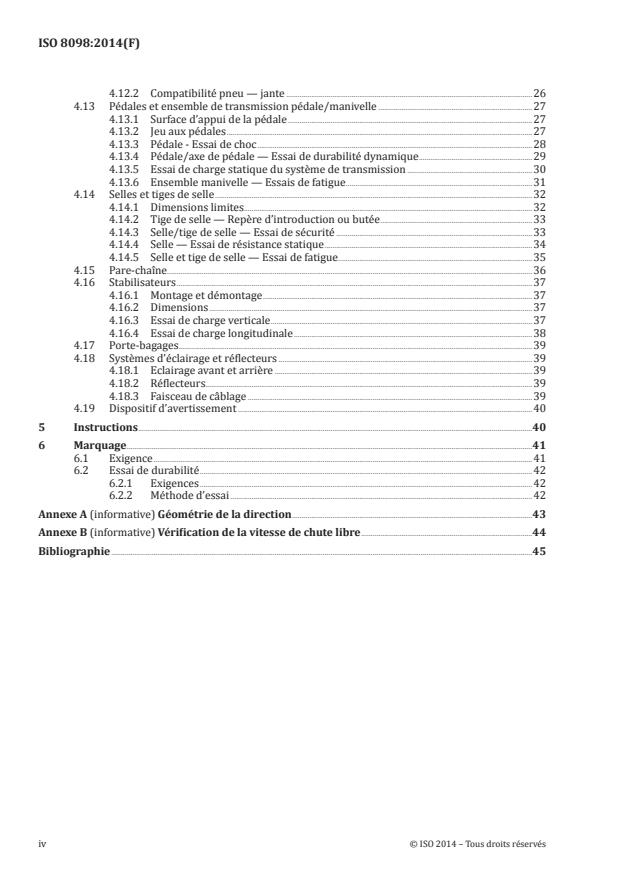 L'ISO 8098:2014 spécifié les méthodes d'essai et les exigences de sécurité et de performance à observer lors de la conception, de l'assemblage et des essais des bicyclettes pour jeunes enfants et de leurs sous-ensembles, et précise les lignes directrices concernant l'utilisation et l'entretien de celles-ci. L'ISO 8098:2014 est applicable aux bicyclettes qui ont une hauteur maximale de selle comprise entre 435 mm et 635 mm et qui sont propulsées par une force transmise à la roue arrière. L'ISO 8098:2014 ne s'applique pas aux bicyclettes spéciales prévues pour le «stunting» (par exemple, les bicyclettes BMX).