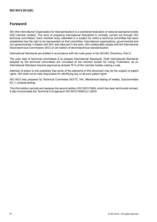 ISO 9513:2012 - Metallic materials -- Calibration of extensometer systems used in uniaxial testing