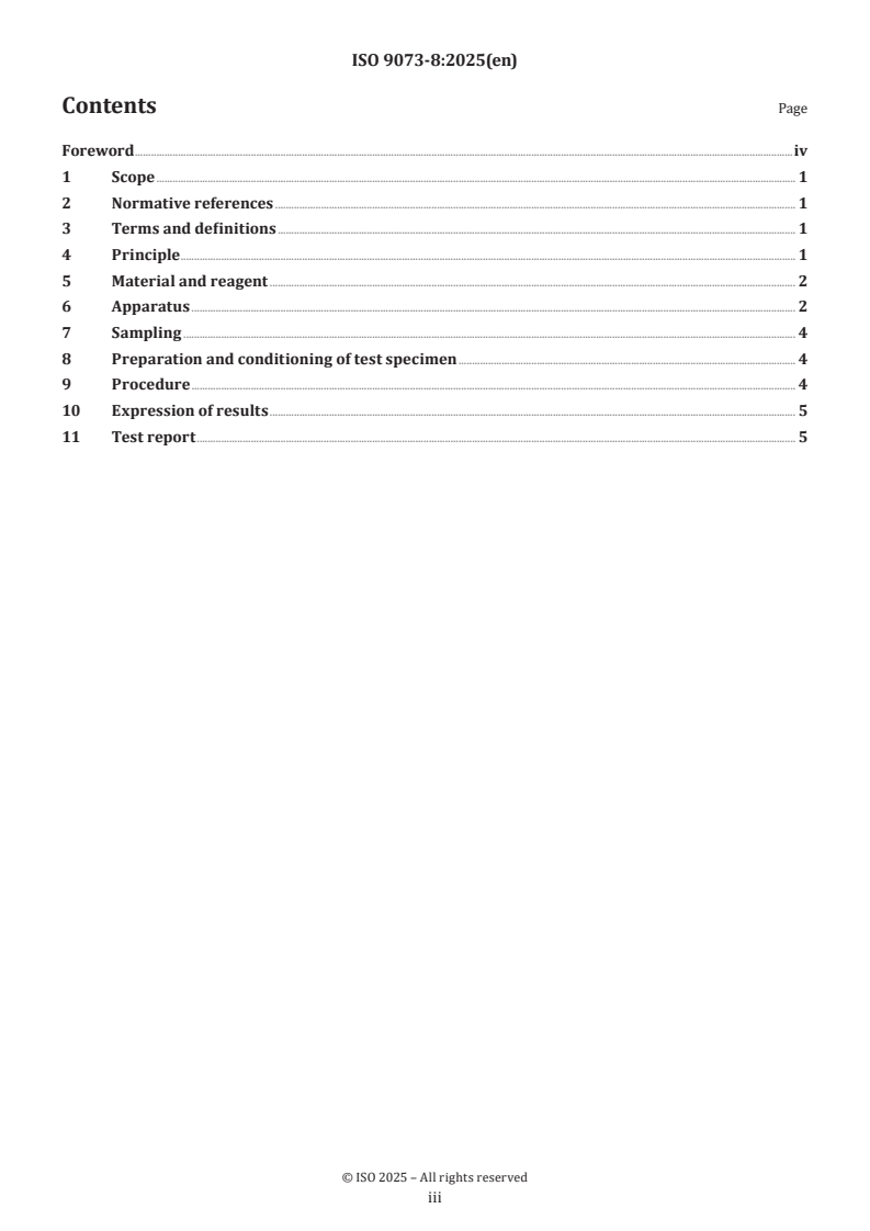 ISO 9073-8:2025 - Nonwovens — Test methods — Part 8: Determination of liquid strike-through time (simulated urine) for nonwoven coverstocks Released:10/6/2025
