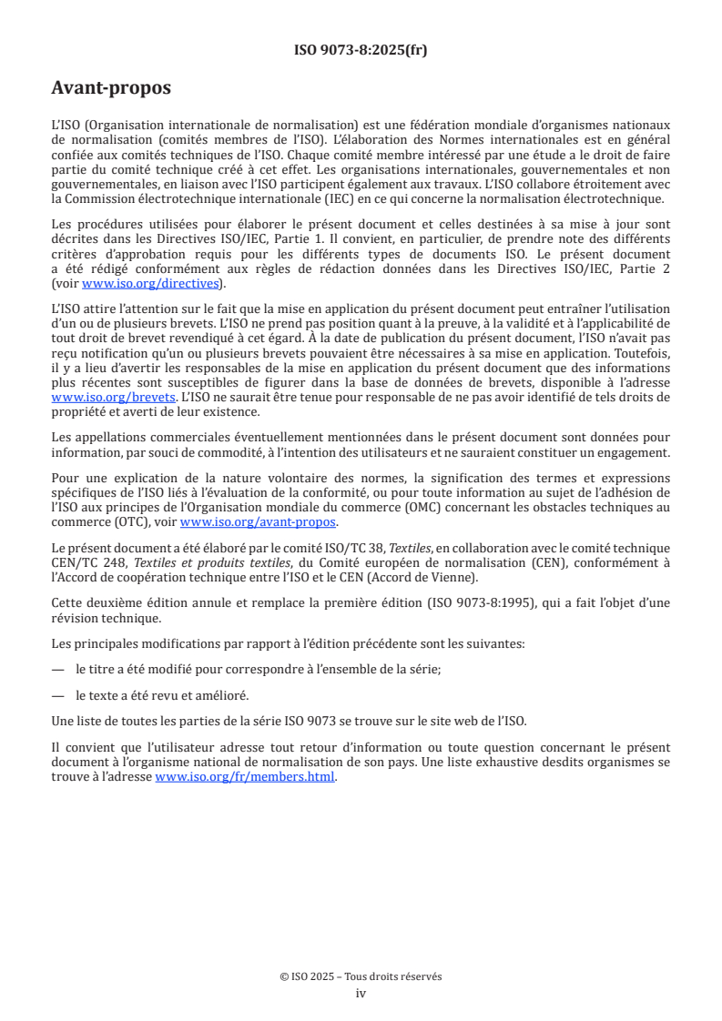 Cette deuxième édition annule et remplace la première édition (ISO 9073-8:1995), qui a fait l’objet d’une