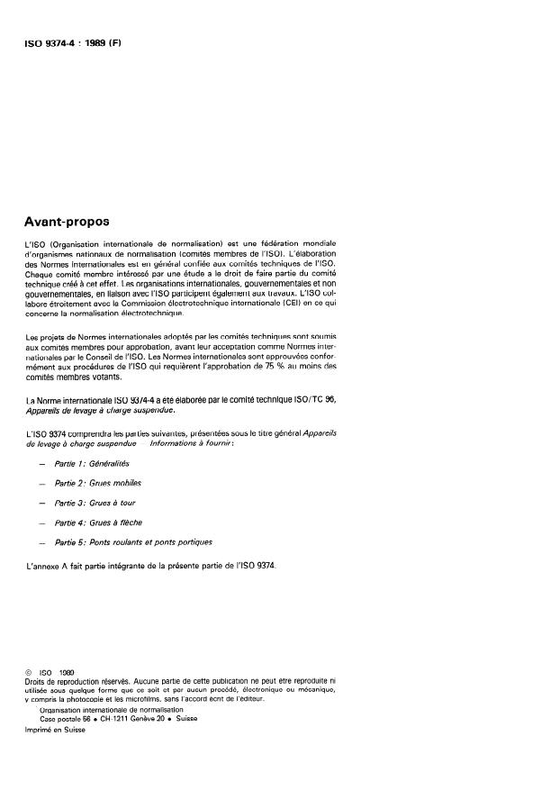 1 Domaine d’application ISO 7363 : 1986, Grues et appareils de levage - Caractéristi-
