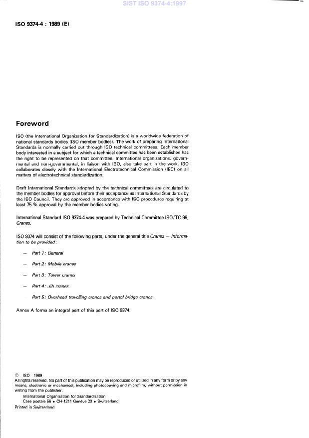 ISO 9374-4:1989 - Cranes -- Information to be provided