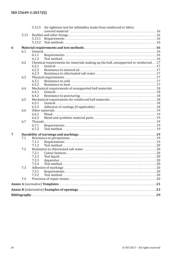 ISO 25649-1:2017 specifies safety requirements and test methods related to materials, safety, performance for classified floating leisure articles for use on and in water in accordance with Clause 4 (see Table 1). ISO 25649-1:2017 is only applicable with ISO 25649‑2 and the relevant specific parts (ISO 25649‑3 to ISO 25649‑7). NOTE 1 Specific safety requirements are specified in ISO 25649‑3 to ISO 25649‑7. NOTE 2 The specific parts can include exclusions from the general requirements specified in this document and/or ISO 25649‑2. ISO 25649-1:2017 is not applicable to: - aquatic toys according to European Directive 2009/48/EC (use in shallow waters/use under supervision); - inflatable boats with a buoyancy > 1 800 N according to European Directive 94/25/EC; - buoyant aids for swimming instructions according to European Directive 89/686/EEC; - air mattresses which are not specifically designed or intended for use on the water (e.g. velour bed, self inflating mattress and rubberized cotton air mattress); - floating seats for angling purposes; - surf sports type devices (e.g. body boards, surf boards); - water ski, wakeboard or kite surfing board; - devices made from rigid materials e.g. wood, aluminium, hard or non-deformable plastic; - devices which are kept in shape by permanent air flow; - rings intended for use on water slides; - wading devices.