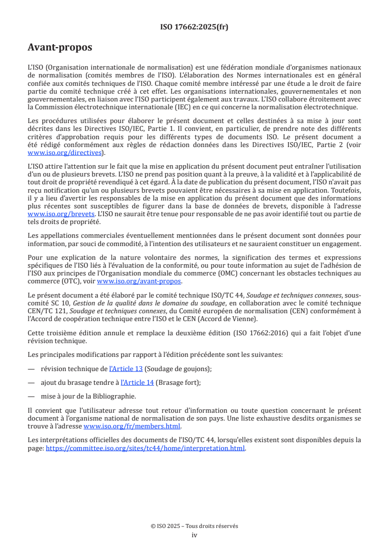 La norme ISO 17662:2025 constitue un document essentiel pour la calibration, la vérification et la validation des équipements utilisés dans le domaine du soudage, ainsi que pour les activités connexes. Son champ d'application est clairement défini, se concentrant sur le contrôle des variables de processus pendant la fabrication et sur le contrôle des propriétés des équipements liés aux processus de soudage. Cela revêt une importance particulière lorsque la documentation de sortie ne peut être obtenue facilement ou économiquement par le biais d'un suivi, d'inspections ou d'essais ultérieurs. Parmi les forces de cette norme, on note qu'elle s'appuie sur des listes de variables de processus spécifiées dans des normes internationales relatives à la définition des procédures de soudage, notamment dans la série ISO 15609. Cela permet une cohérence et une uniformité dans l'application des exigences de calibration, vérification et validation, renforçant ainsi la sécurité et l'aptitude à l'usage du produit fabriqué. De plus, des éléments d'accompagnement sont fournis dans l'Annexe B, offrant des indications utiles sur les exigences nécessaires lors des tests d'acceptation des équipements utilisés pour le soudage ou des processus connexes. Un autre aspect pertinent de la norme ISO 17662:2025 est qu'elle ne s’applique pas aux activités d'inspection, d'essai ou de mesure des produits soudés finaux, ce qui limite son périmètre aux équipements utilisés sur le site de production. Cela permet aux professionnels de se concentrer sur des aspects cruciaux liés à la production, tout en évitant la confusion avec d'autres processus d'assurance qualité. L'Annexe C enrichit encore la norme en fournissant des informations utiles lorsque d'autres parties sont impliquées dans les activités de calibration, de vérification et de validation. En somme, la norme ISO 17662:2025 est d'une grande pertinence pour les entreprises qui cherchent à garantir la conformité et la sécurité des équipements de soudage. Sa structure bien définie et ses références aux normes internationales en font un outil précieux pour les opérations de soudage, répondant aux exigences strictes de l'industrie tout en permettant des pratiques de qualité optimales.