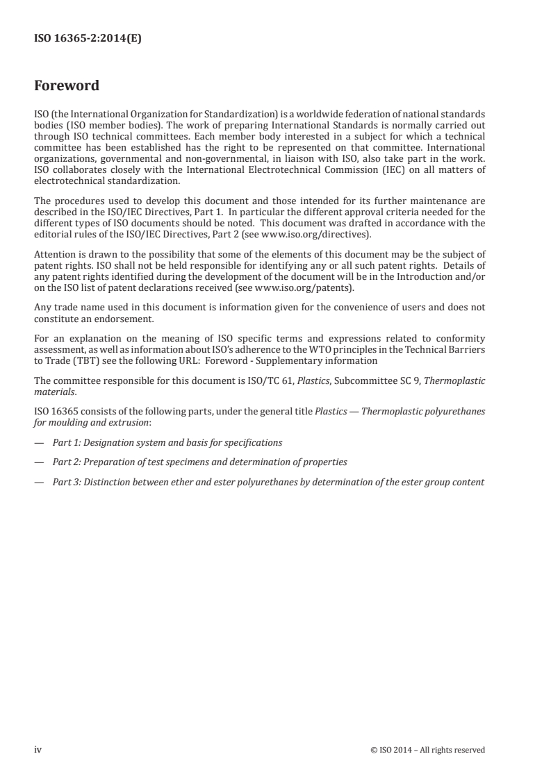 ISO 16365-2:2014 - Plastics — Thermoplastic polyurethanes for moulding and extrusion — Part 2: Preparation of test specimens and determination of properties Released:4/28/2014