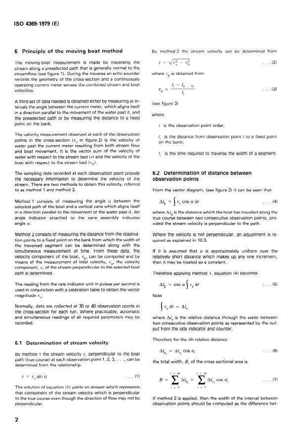 ISO 4369:1979 is a standard published by the International Organization for Standardization (ISO). Its full title is "Measurement of liquid flow in open channels - Moving-boat method". This standard covers: Specifies methods for measuring discharge in large rivers and estuaries by the moving-boat technique. In the following sections procedures applicable to this method and the general requirements of equipment are covered. A complete facsimile example of computation of a moving boat measurement is given in the annexes.