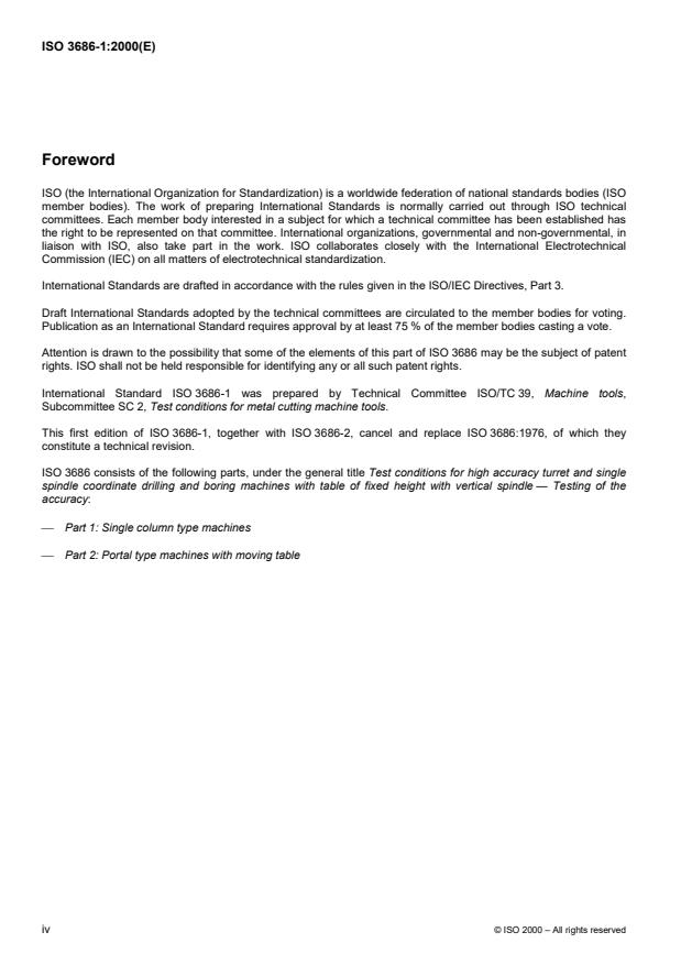 Keywords: ISO 3686-1:2000, coordinate drilling and boring machines, accuracy testing, geometric tests, machining tests, single column machines, spindle run-out, table flatness, ISO 230-1.
