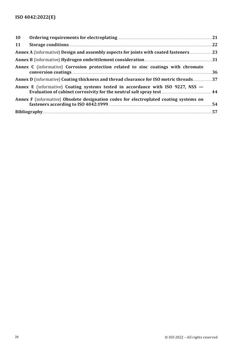 - Scope and precedence: ISO 4042:2022 takes precedence over other electroplating documents when applied to fasteners (see Clause 1).