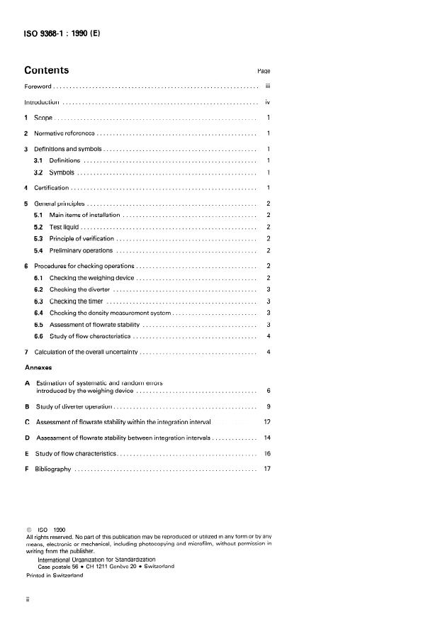 ISO 9368-1:1990 is a standard published by the International Organization for Standardization (ISO). Its full title is "Measurement of liquid flow in closed conduits by the weighing method - Procedures for checking installations - Part 1: Static weighing systems". This standard covers: Specifies methods of testing installations for flowrate measurement by the static weighing method. Table 1 lists the symbols of concern. The normative annexes A to E contain various examples for error estimation, assessment of the uncertainty and flowrate stability.