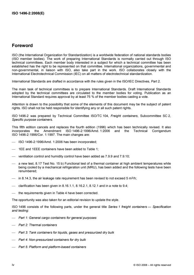ISO 1496-2:2008 gives the basic specifications and testing requirements for ISO series 1 thermal containers for international exchange and for conveyance of goods by road, rail and sea, including interchange between these forms of transport.