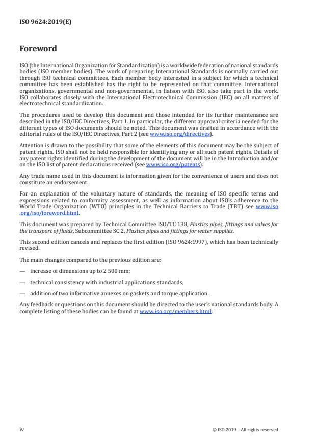Keywords: ISO 9624:2019, thermoplastics piping systems, flange adapters, loose backing flanges, mating dimensions, DN 2500, PN 25, butt fusion, socket fusion, adhesive bonded, gaskets, bolt torque.