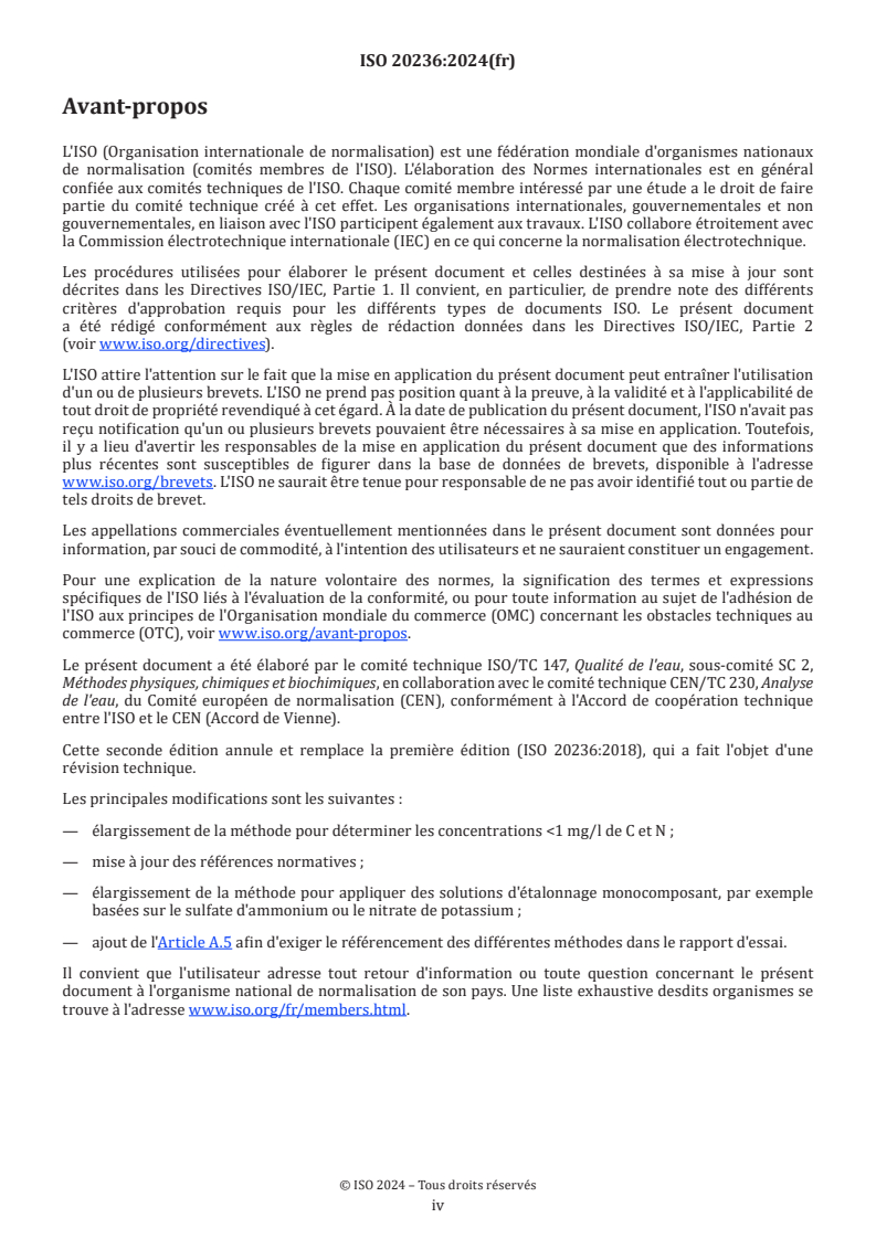 ISO 20236:2024 - Qualité de l'eau — Dosage du carbone organique total (COT), carbone organique dissous (COD), azote lié total (TNb) et azote lié dissous (DNb) après combustion catalytique oxydante à haute température Released:11/15/2024