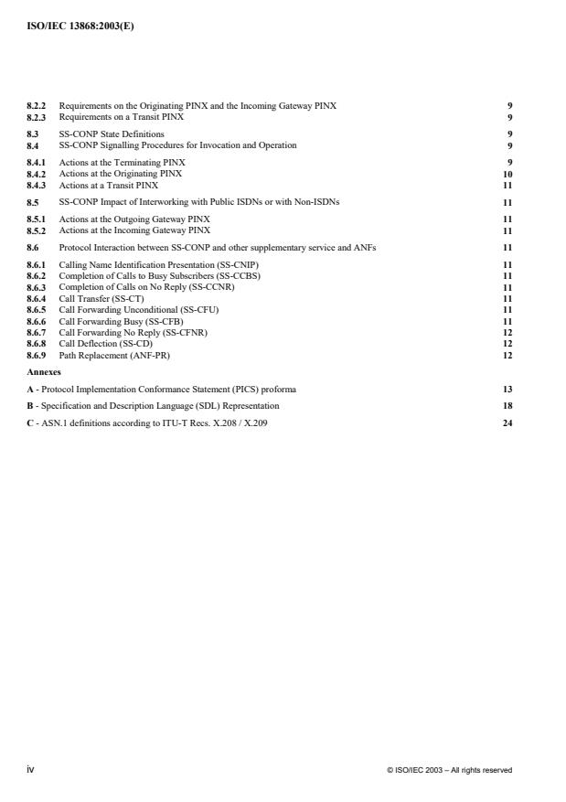 Keywords: ISO/IEC 13868:2003, QSIG, PISN, PINX, SS‑CNIP, SS‑CONP, Q reference point, inter‑exchange signalling, caller name presentation.