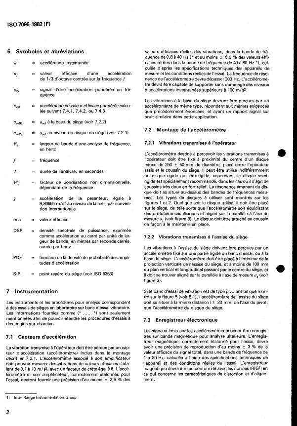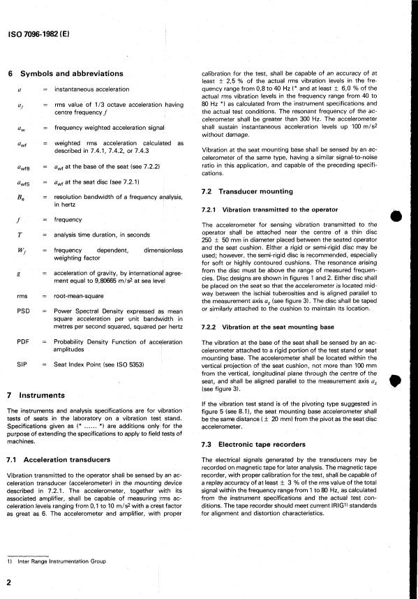 This International Standard is applicable to seats fitted to earth- procedure includes means of weighting the vibration level at
