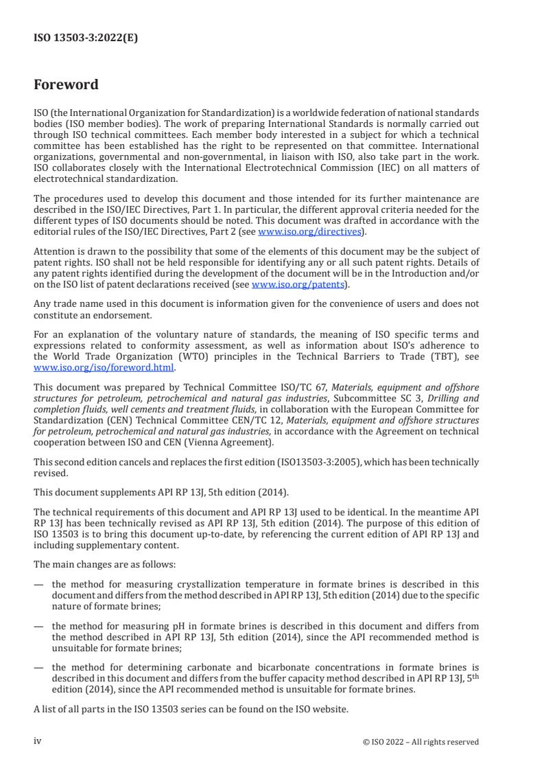 REDLINE ISO 13503-3:2022 - Petroleum and natural gas industries — Completion fluids and materials — Part 3: Testing of heavy brines Released:13. 06. 2022