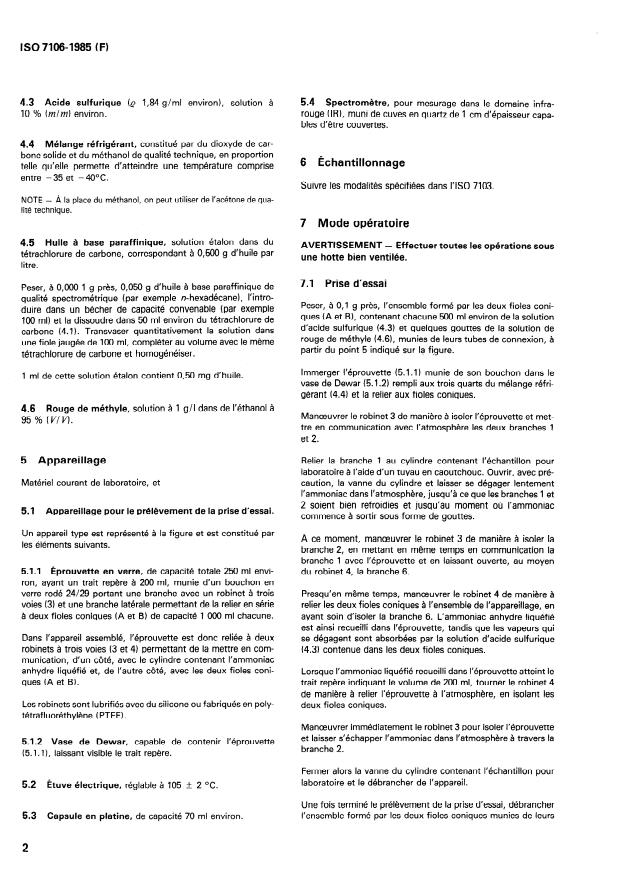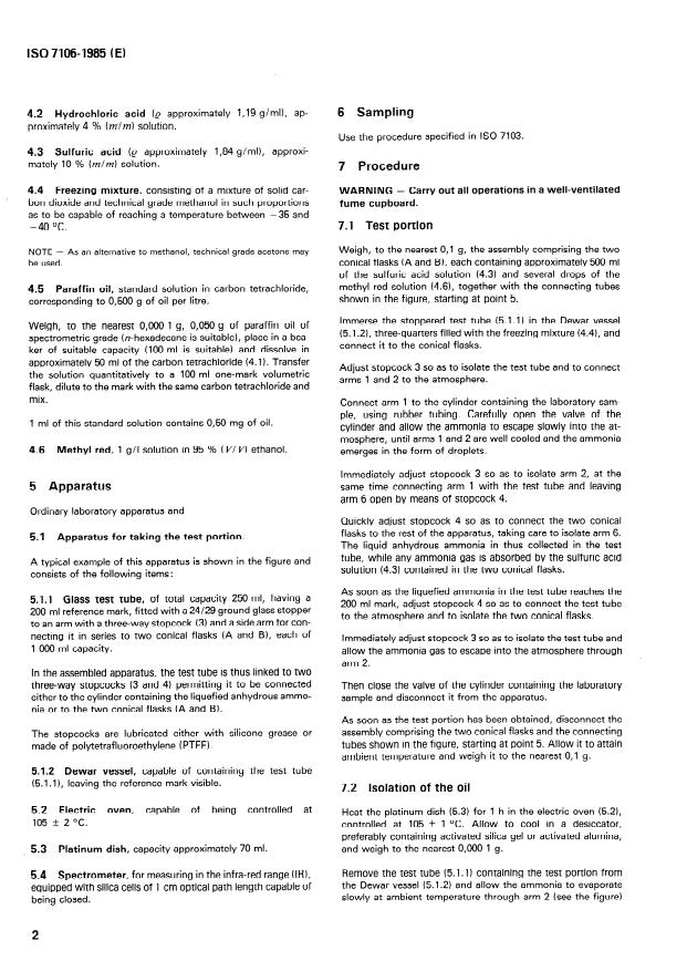 Keywords: ISO 7106:1985, liquefied anhydrous ammonia, oil content determination, gravimetric method, infra‑red spectrometric method, carbon tetrachloride, ammonia QC, industrial ammonia testing.