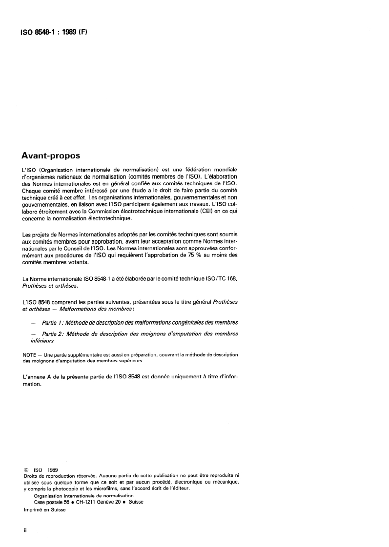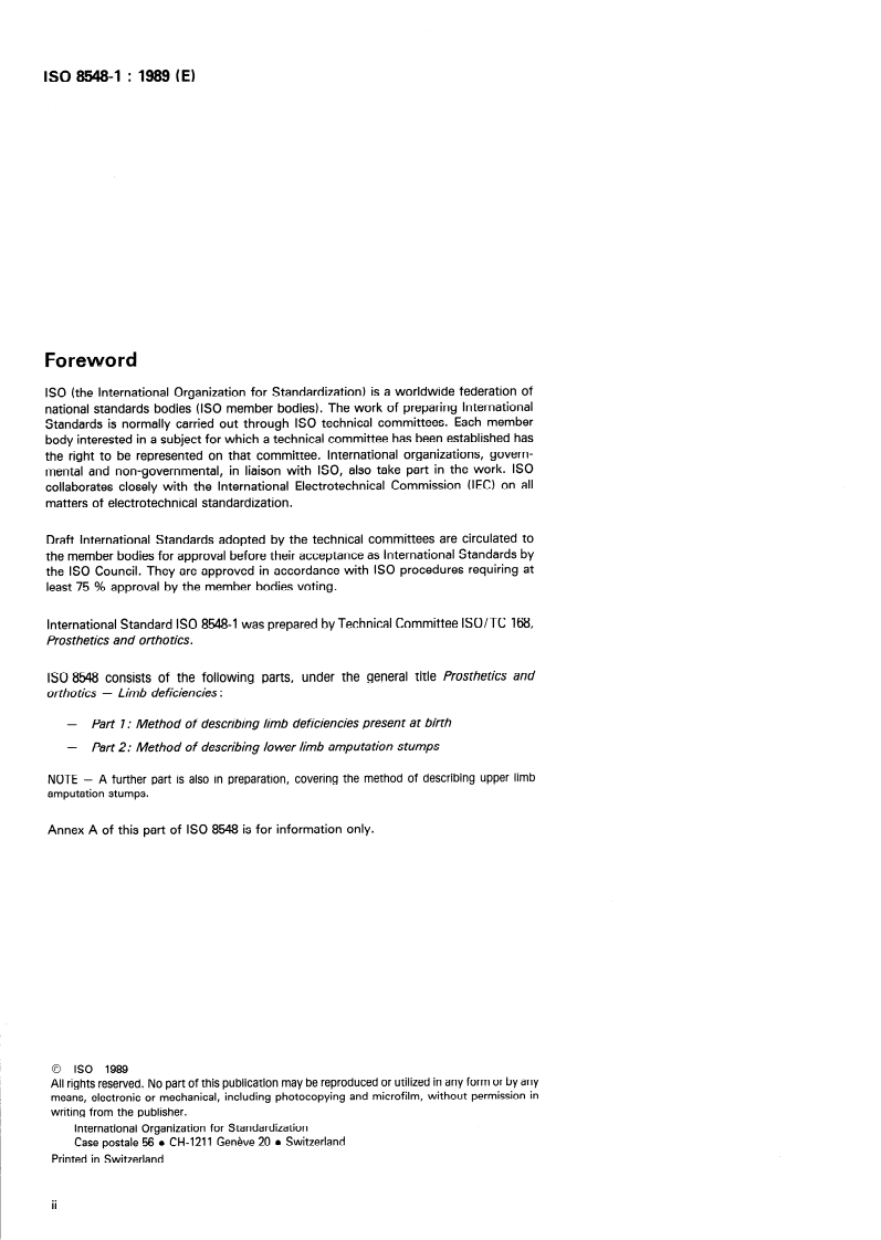 ISO 8548-1:1989 - Prothèses et orthèses — Malformations des membres — Partie 1: Méthode de description des malformations congénitales des membres Released:7/20/1989