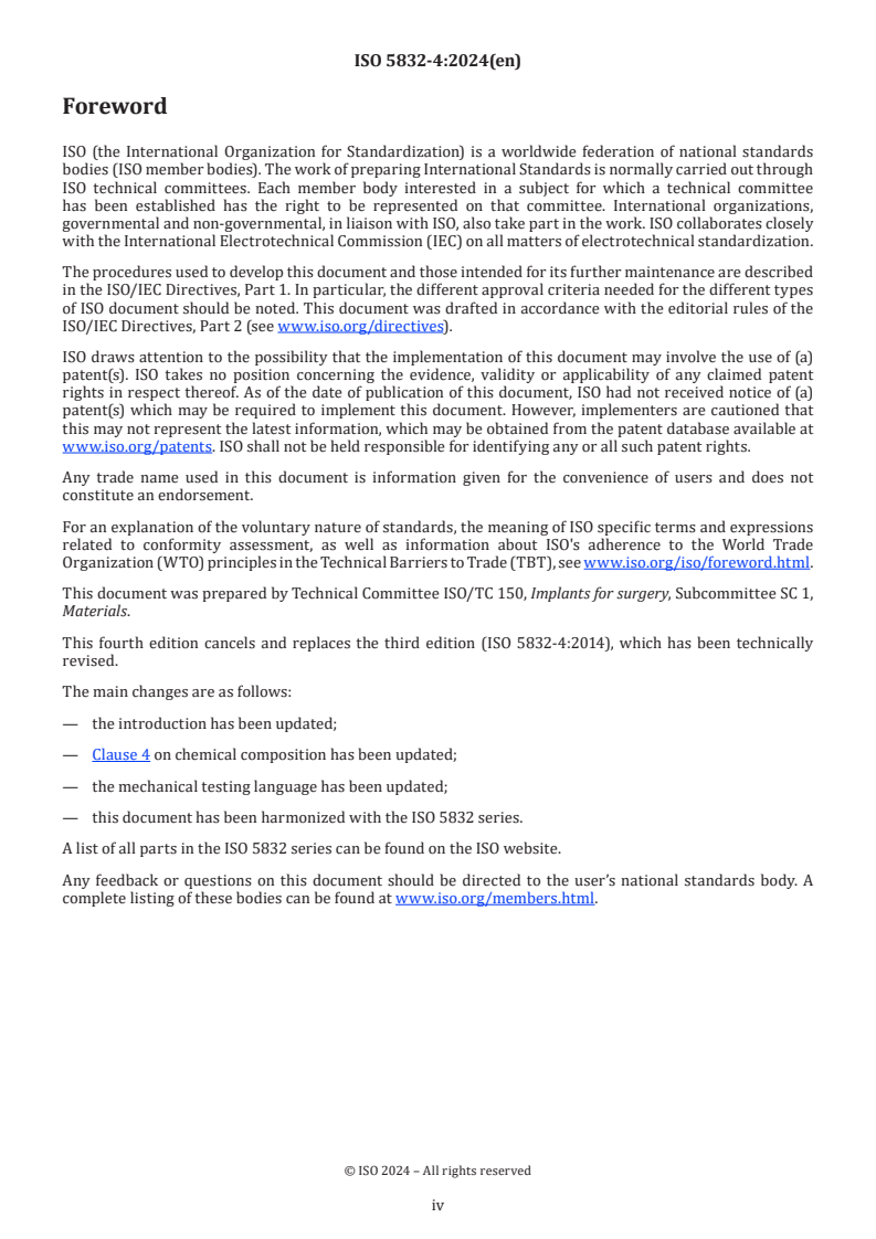 This fourth edition cancels and replaces the third edition (ISO 5832-4:2014), which has been technically