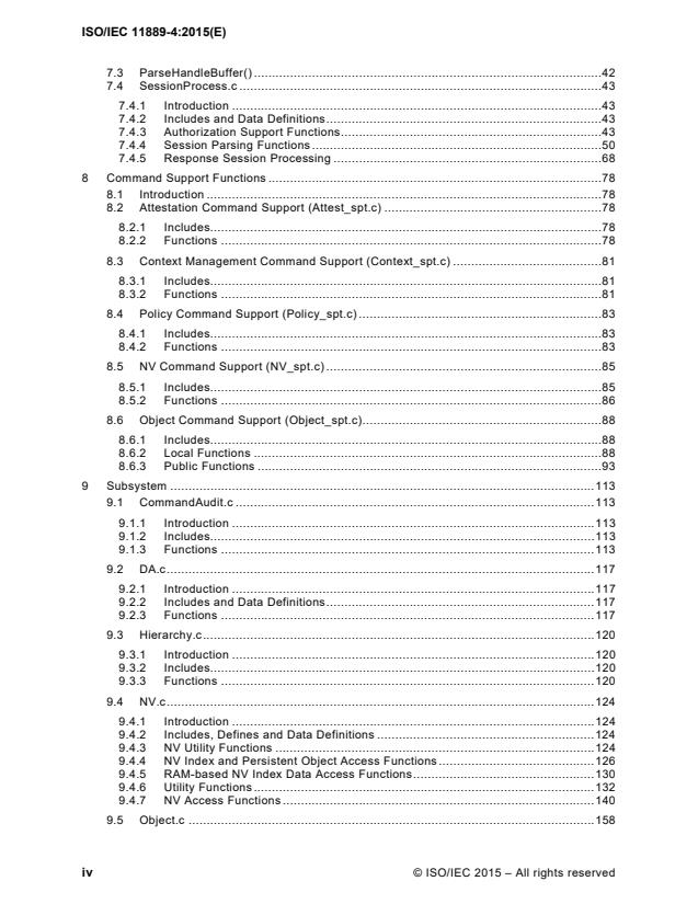 Keywords: ISO/IEC 11889-4:2015, Trusted Platform Module, TPM library, supporting routines, TPM C code, command dispatcher, TPM implementation, TPM firmware, NV storage, PCR, attestation.