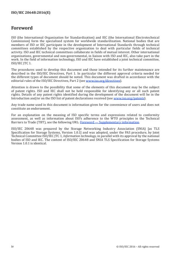 ISO/IEC 20648:2016 is a standard published by the International Organization for Standardization (ISO). Its full title is "Information technology - TLS specification for storage systems". This standard covers: ISO/IEC 20648:2016 details the requirements for use of the Transport Layer Security (TLS) protocol in conjunction with data storage technologies. The requirements set out in this specification are intended to facilitate secure interoperability of storage clients and servers as well as non-storage technologies that may have similar interoperability needs. ISO/IEC 20648:2016 is relevant to anyone involved in owning, operating or using data storage devices. This includes senior managers, acquirers of storage product and service, and other non-technical managers or users, in addition to managers and administrators who have specific responsibilities for information security and/or storage security, storage operation, or who are responsible for an organization's overall security program and security policy development. It is also relevant to anyone involved in the planning, design and implementation of the architectural aspects of storage security.