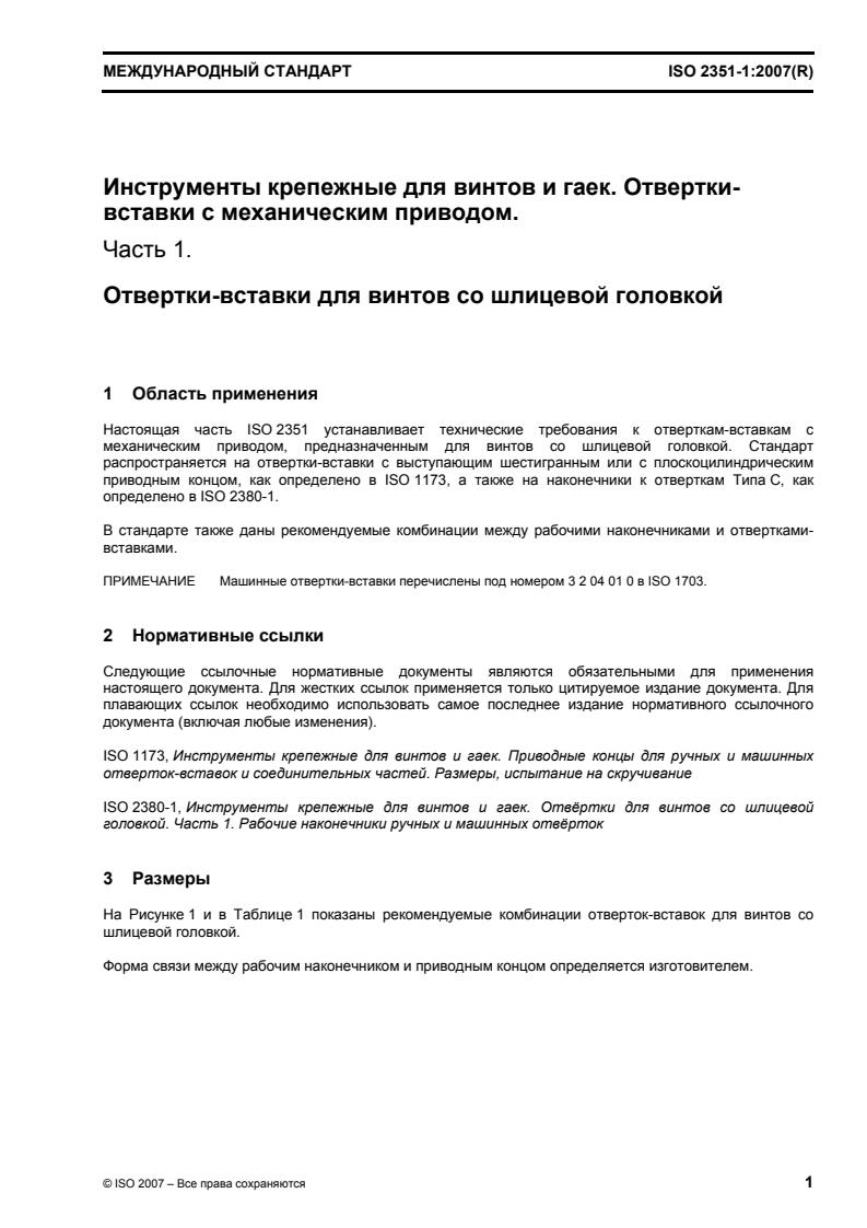 ISO 2351-1:2007 - Assembly tools for screws and nuts -- Machine-operated screwdriver bits