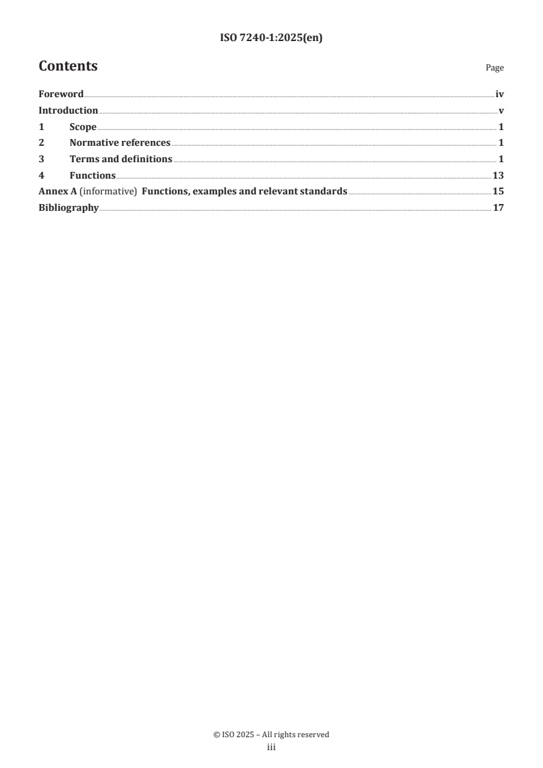 ISO 7240-1 does not prescribe performance test methods itself; instead it provides the foundational terminology and functional concepts used throughout the ISO 7240 series. Key topics and defined items include: