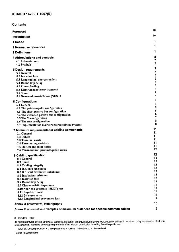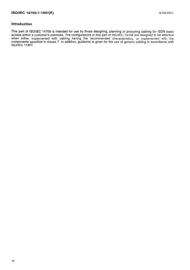 Keywords: ISO/IEC 14709-1:1997, ISDN basic access, customer premises cabling, CPC, insertion loss, NEXT, round‑trip delay, structured cabling, ISO/IEC 11801.