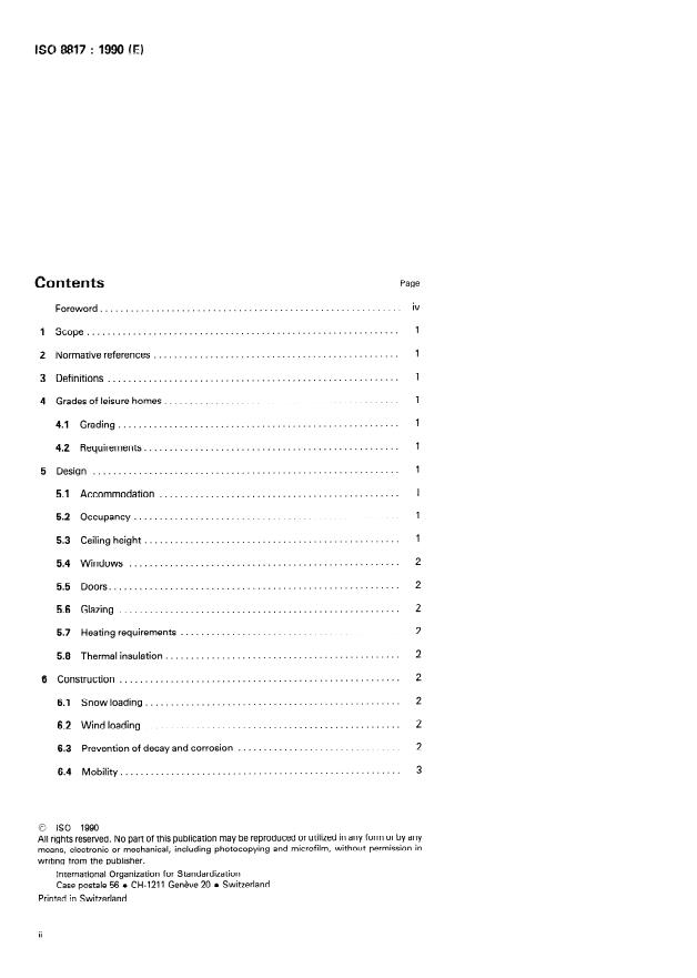 ISO 8817:1990 - Leisure accommodation vehicles -- Leisure homes -- Habitation and stability requirements