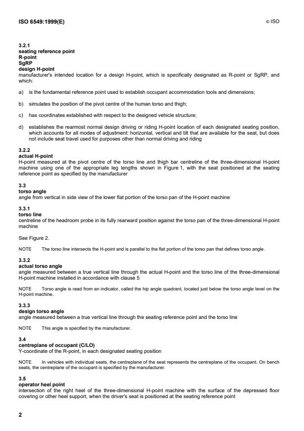 ISO 6549:1999 is a standard published by the International Organization for Standardization (ISO). Its full title is "Road vehicles - Procedure for H- and R-point determination". This standard covers: Road vehicles - Procedure for H- and R-point determination