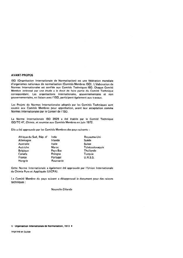 La Norme Internationale ISO 2829 a été établie par le Comité Technique