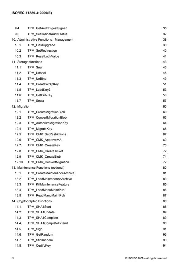 Keywords: ISO/IEC 11889-4:2009, Trusted Platform Module, TPM commands, TPM functionality, TPM specification, platform integrity, hardware security, TPM cryptographic functions, TPM auditing, TPM key management.