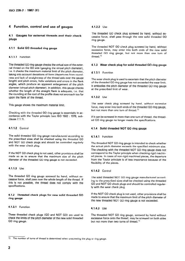 ISO 228-2:1987 - Pipe threads where pressure-tight joints are not made on the threads — Part 2: Verification by means of limit gauges Released:8/20/1987