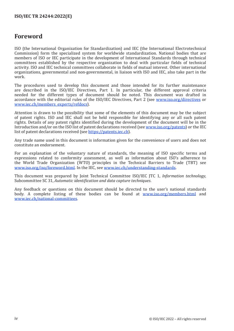 ISO/IEC TR 24244:2022 is classified under the following ICS (International Classification for Standards) categories: 01.080.50 - Graphical symbols for use on information technology and telecommunications technical drawings and in relevant technical product documentation; 35.040.50 - Automatic identification and data capture techniques. The ICS classification helps identify the subject area and facilitates finding related standards.