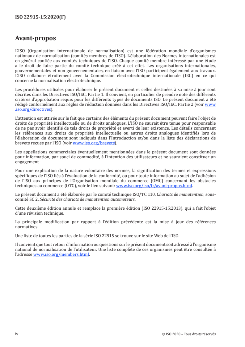 Cette deuxième édition annule et remplace la première édition (ISO 22915-15:2013), qui a fait l’objet