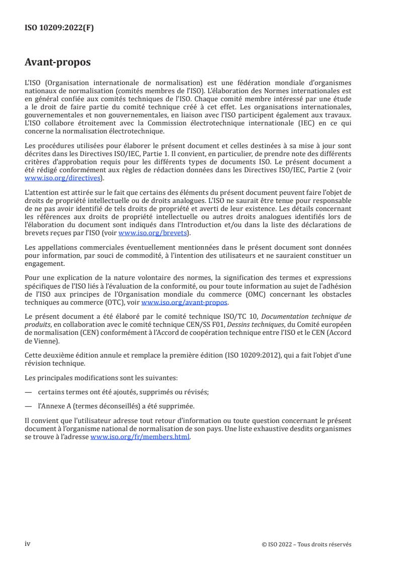 ISO 10209:2022 is a standard published by the International Organization for Standardization (ISO). Its full title is "Technical product documentation - Vocabulary - Terms relating to technical drawings, product definition and related documentation". This standard covers: This document establishes and defines terms used in technical product documentation relating to technical drawings, product definition and related documentation in all fields of application. The terms have been classified into specific fields of application. NOTE New terms required by ISO/TC 10 subcommittees and working groups for new or revised standards will be ratified by the ISO/TC 10 vocabulary maintenance team and included in future amendments of this document.