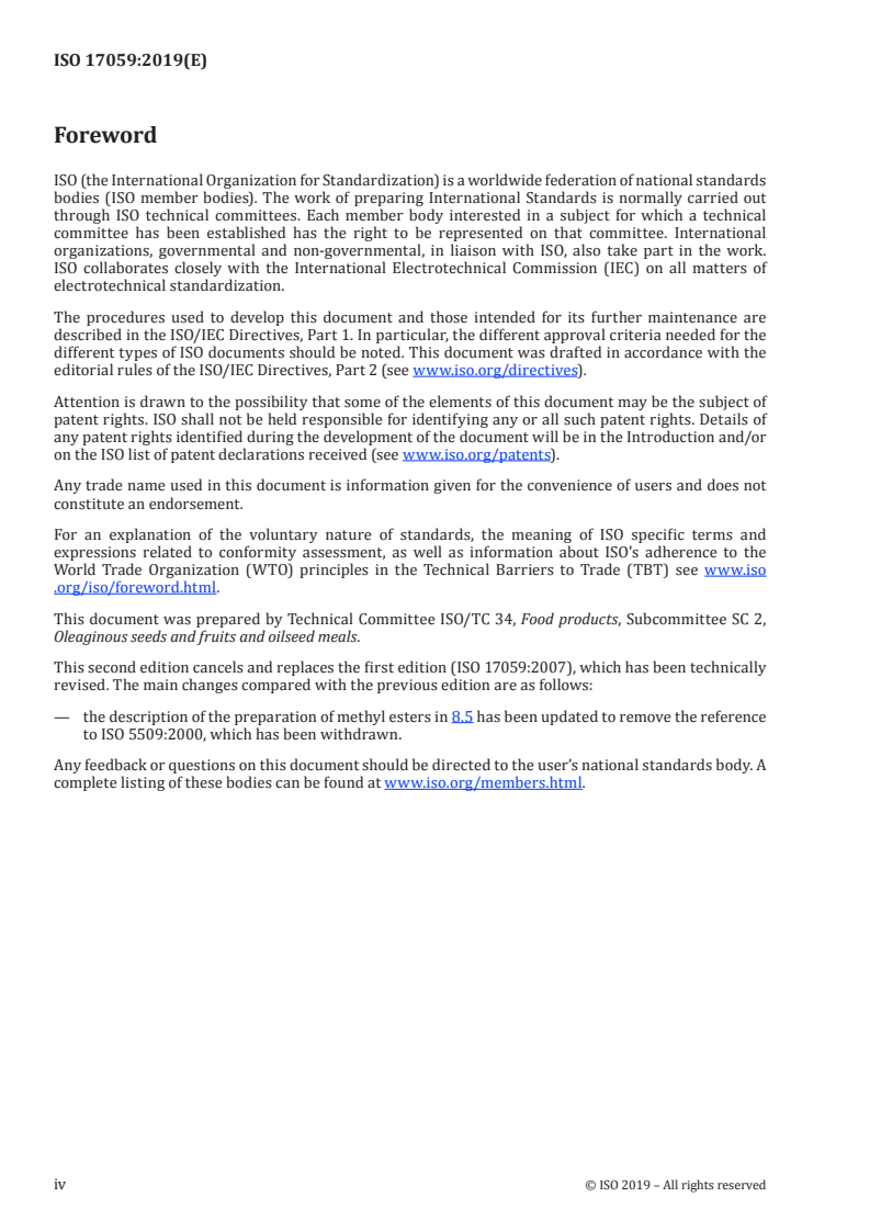 ISO 17059:2019 - Oilseeds — Extraction of oil and preparation of methyl esters of triglyceride fatty acids for analysis by gas chromatography (rapid method)/23/2019