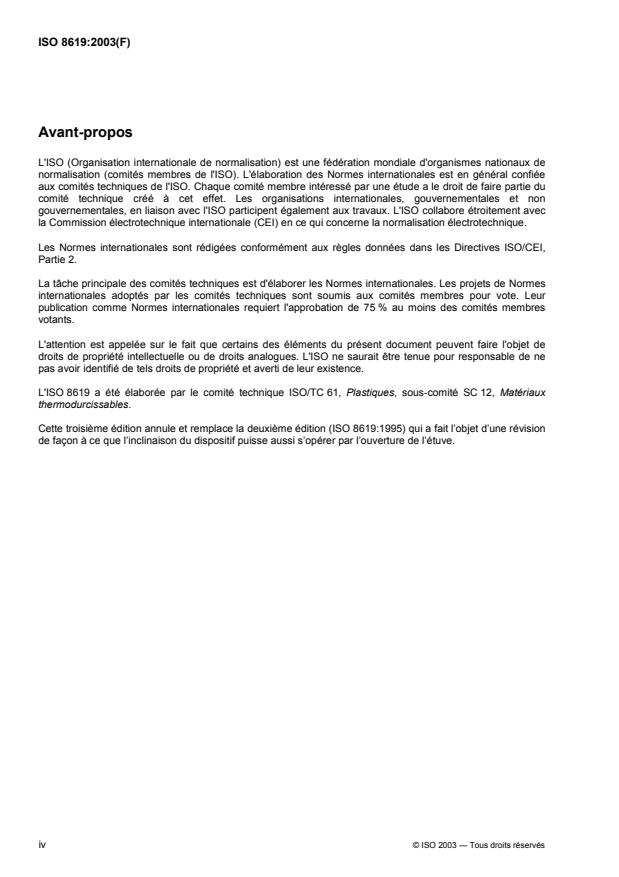 ISO 8619 was prepared by Technical Committee ISO/TC 61, Plastics, Subcommittee SC 12, Thermosetting