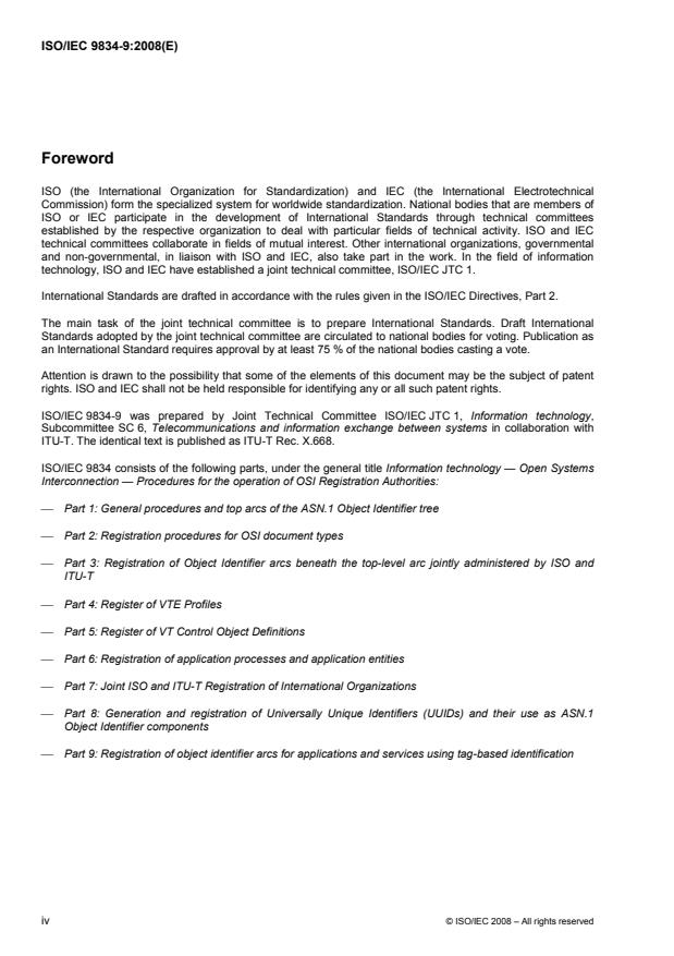 ISO/IEC 9834-9 was prepared by Joint Technical Committee ISO/IEC JTC 1, Information technology,