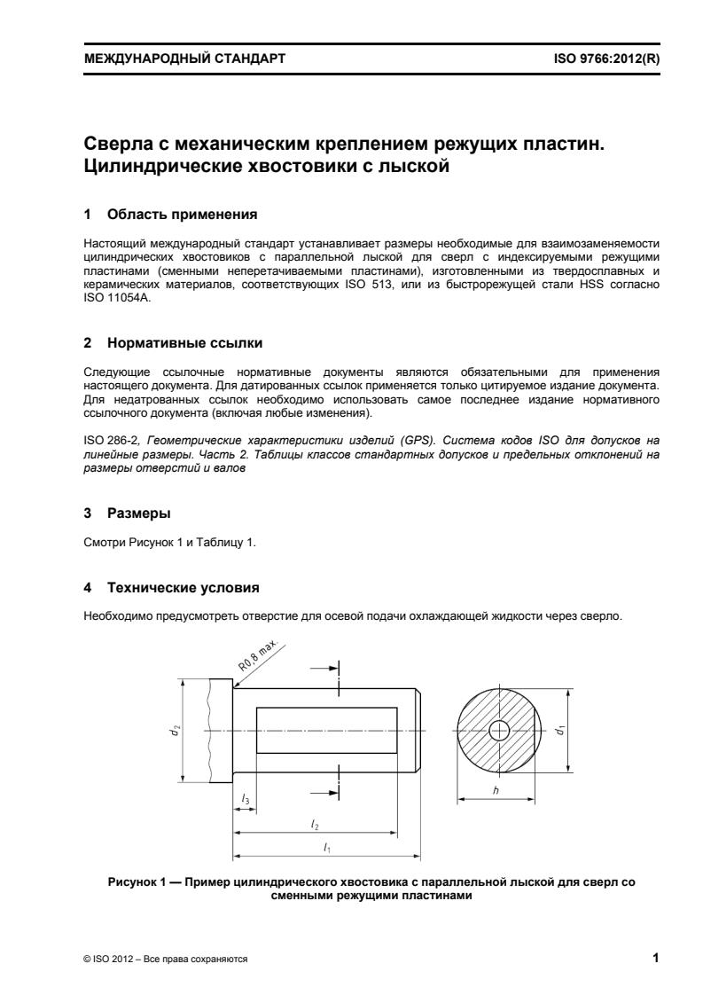 ISO 9766:2012 - Drills with indexable inserts -- Cylindrical shanks with a parallel flat