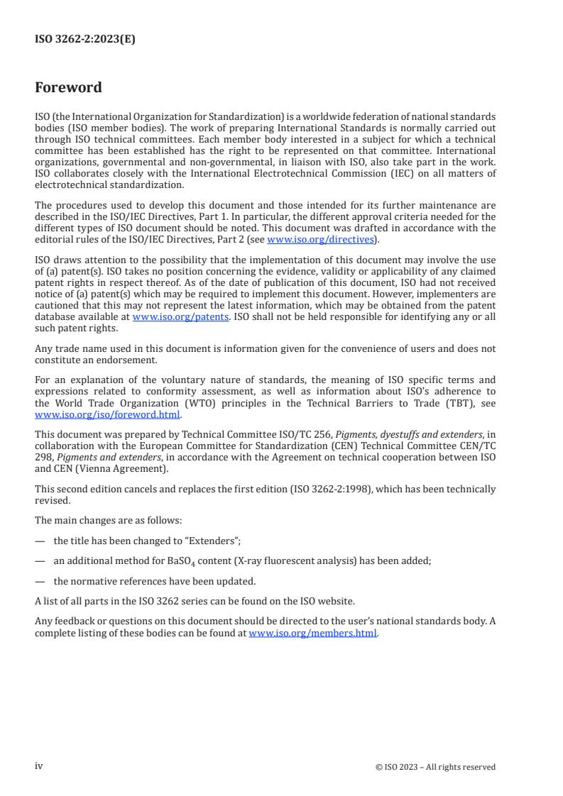 Keywords: ISO 3262-2:2023, baryte, barium sulfate, BaSO4, extenders, specifications, methods of test, XRF, gravimetric analysis, pigments, coatings, sampling.