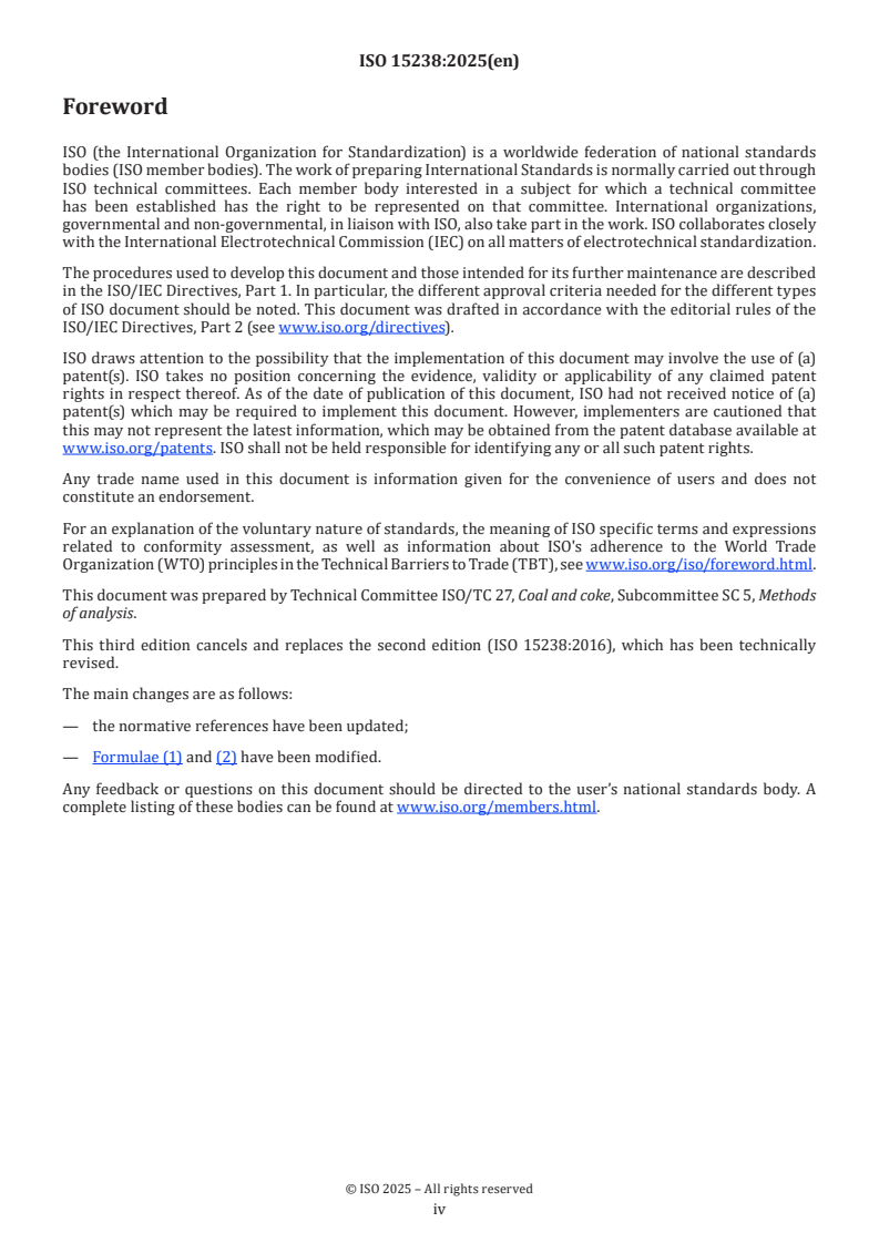 This standard is prepared by ISO/TC 27/SC 5 (Coal and coke methods of analysis) and replaces ISO 15238:2016. For implementation, consult the full ISO 15238:2025 document and national standards body guidance.