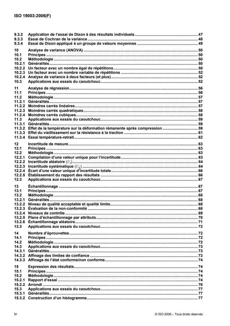 ISO 19003:2006 provides guidance on the application of statistics to rubber testing. It is intended not to conflict with or replace existing International Standards covering basic statistical techniques, but rather to complement them and provide examples of those techniques applied to particular rubber testing situations.