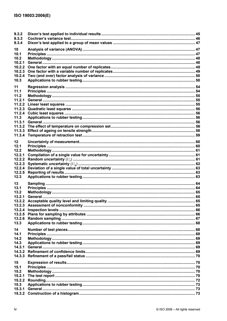 The standard covers a broad range of statistical topics applied to rubber physical testing, including: