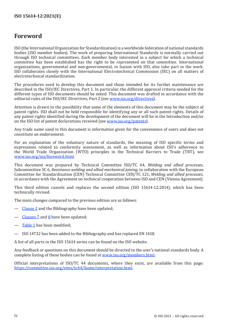 Cette troisième édition annule et remplace la seconde édition (ISO 15614-12:2014), qui a fait l'objet