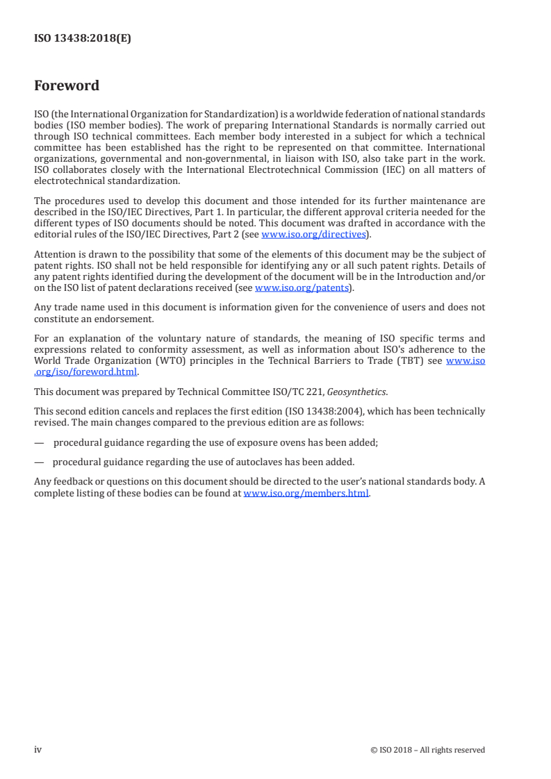REDLINE ISO 13438:2018 - Geosynthetics — Screening test method for determining the resistance of geotextiles and geotextile-related products to oxidation Released:11/28/2018