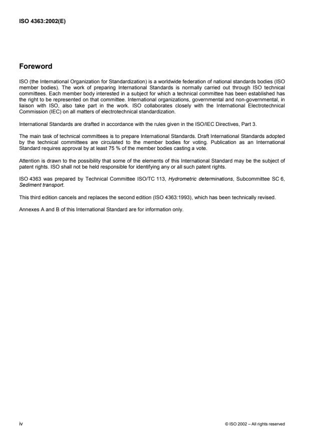 Keywords: ISO 4363:2002, suspended sediment, open channels, cross-sectional mean sediment mass concentration, particle size distribution, hydrological stations, sediment sampling, sediment transport, measurement uncertainty.
