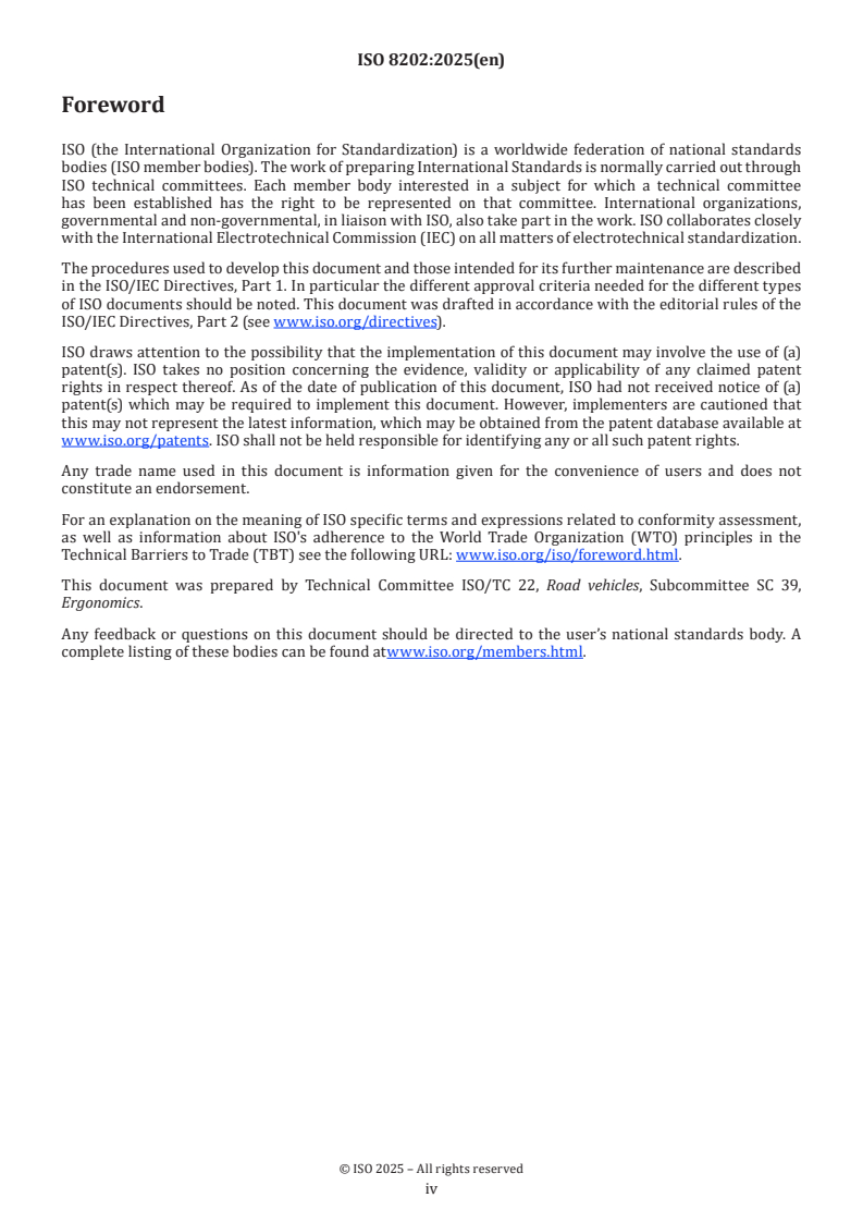ISO 8202:2025 is classified under the following ICS (International Classification for Standards) categories: 13.180 - Ergonomics; 43.020 - Road vehicles in general. The ICS classification helps identify the subject area and facilitates finding related standards.