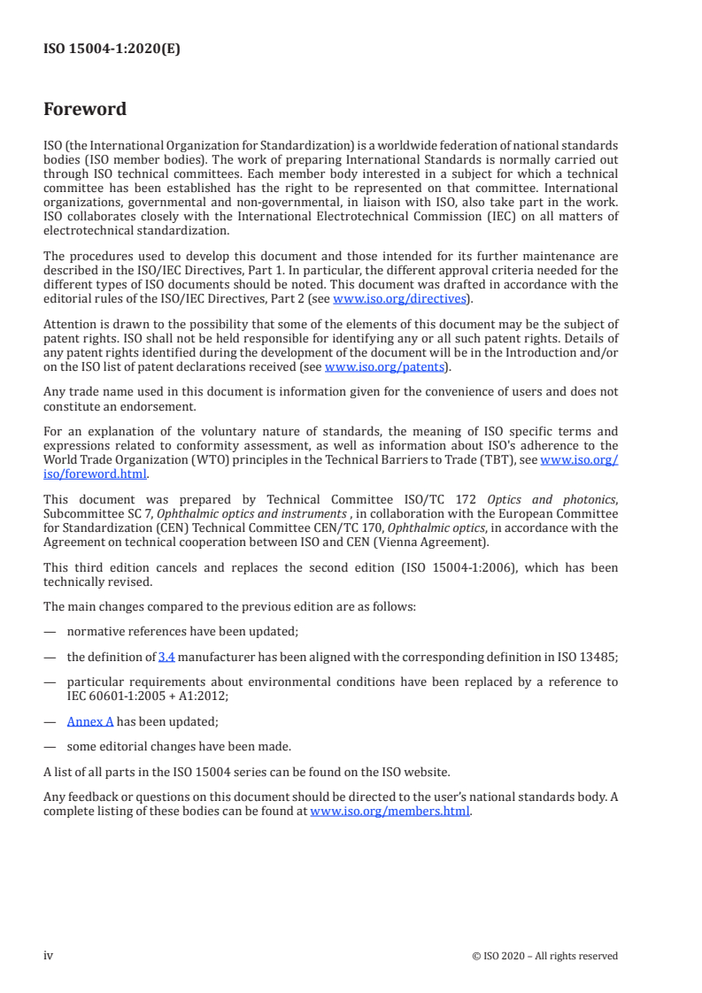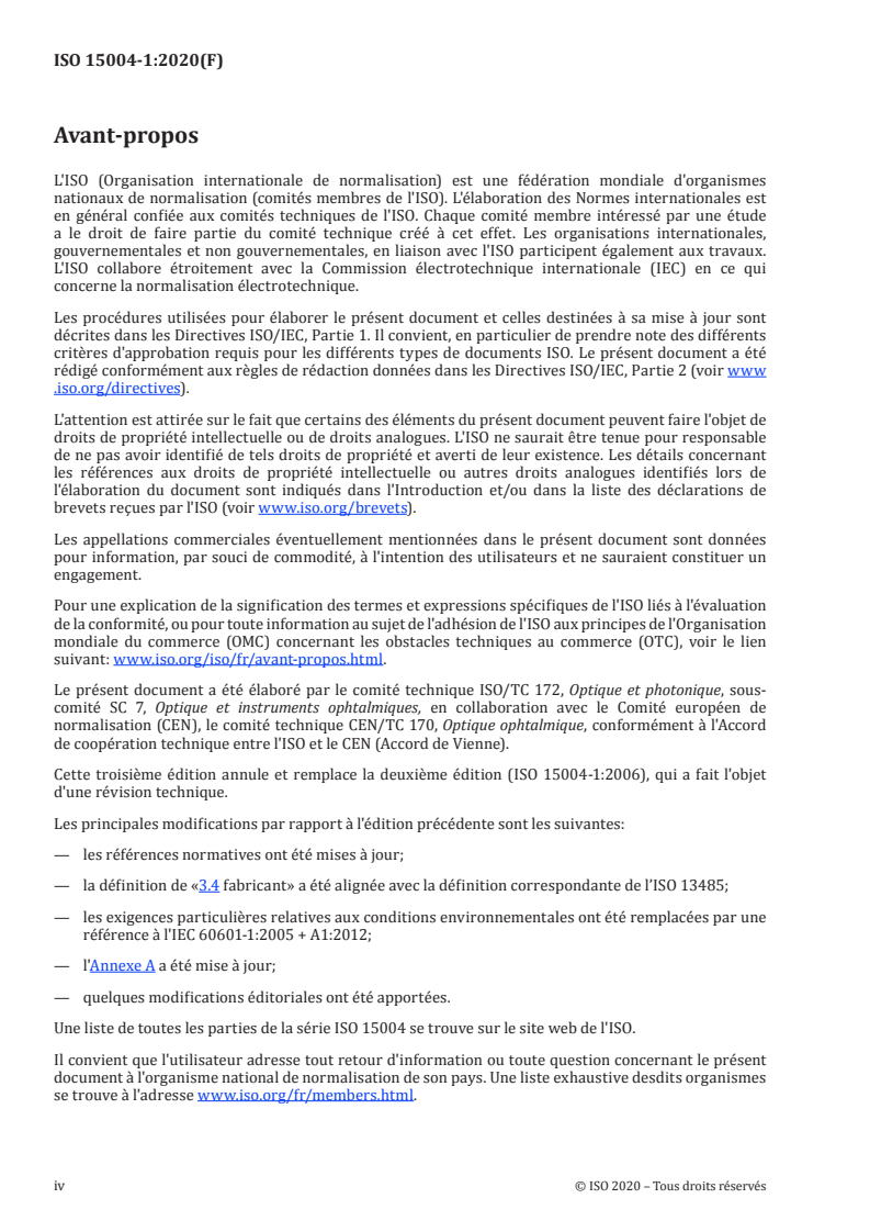 Cette troisième édition annule et remplace la deuxième édition (ISO 15004-1:2006), qui a fait l'objet